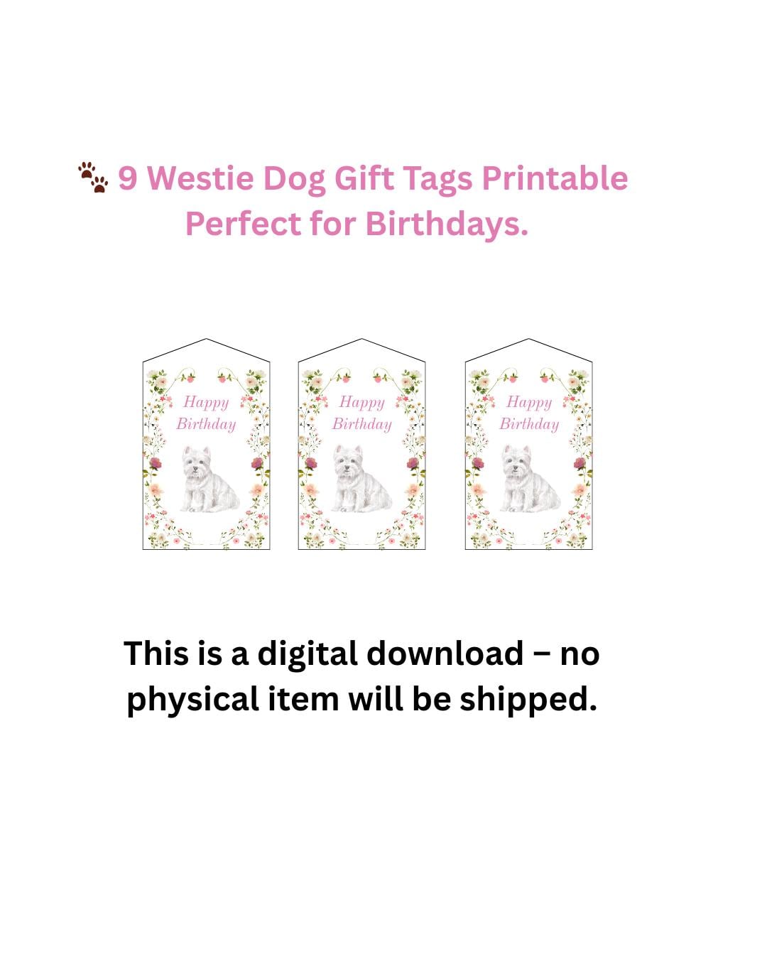 Celebrate a birthday with this adorable Westie “Happy Birthday” printable gift tag — perfect for West Highland Terrier lovers of all ages 🎂🐾 This PDF printable is an instant download, making it ideal for last-minute birthday gifts. ✨ Perfect for: Westie lovers & dog parents Birthday gifts and treat bags Cards, flowers, and gift wrapping Handmade or small shop packaging