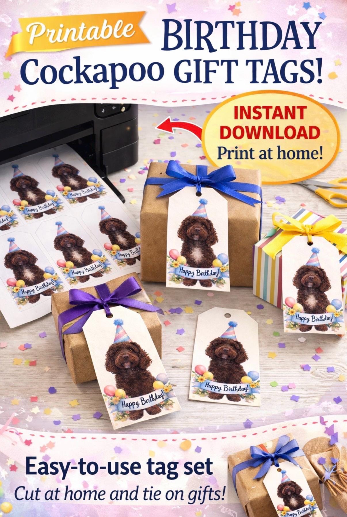 Add a personal, paw-fect finishing touch to your gifts with these adorable Printable Cockapoo Birthday Gift Tags! Designed for dog lovers, these high-quality tags are easy to print at home and instantly elevate any present.