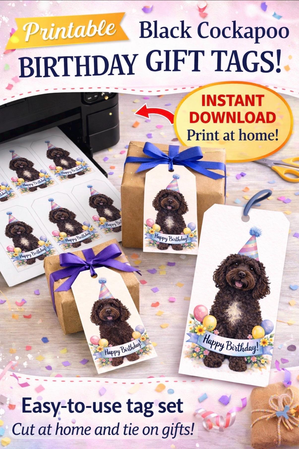 Birthday Cockapoo (Black) Gift Tags – Instant Download
